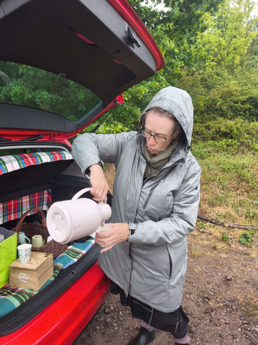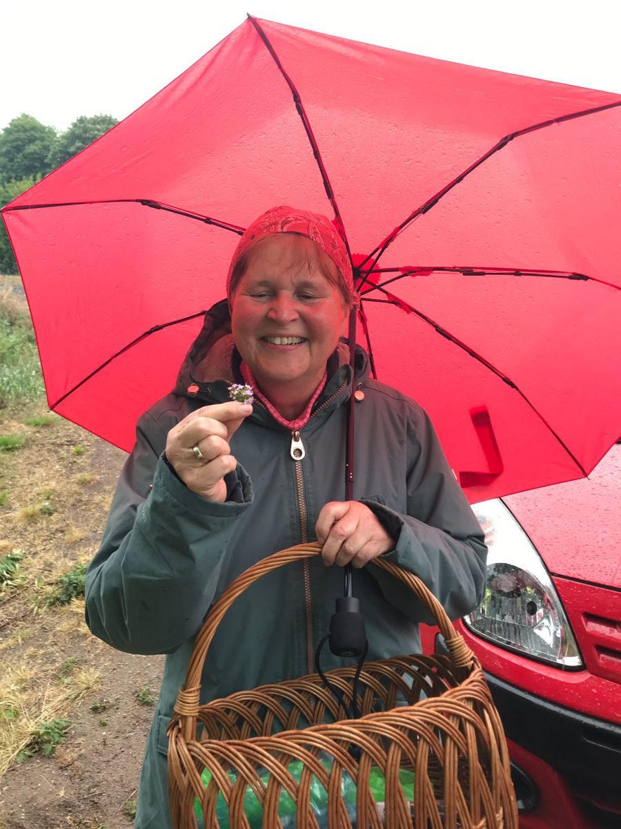 ...und es regnete so einiges Wasser herab... Aber wir ließen uns nicht aufhalten. Regencape und Regenschirm, Gummistiefel und wetterfeste Kleidung ... So waren wir unterhalb der blauen Brücke in Wusterwitz am Knal unterwegs. Mit Thymian vorab zur Stärkung machten wir uns auf den Weg und wurden mit noch mehr frischem und wilden Thymian belohnt. Und der musste natürlich mit nach Hause. Danke für euer Dabeisein auch bei diesem besonderen Wetter!!!