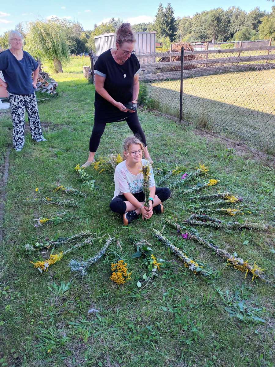 Es ist inzwischen zu einem Ritual geworden, ein festes gemeinsames Sammeln und binden unserer Hexen-Kräuter-Besen. Jeder wählt die Pflanzen/Kräuter seines Herzens aus und es entstehen in jedem Jahr die zauber-haftesten Gebinde. Und unsere Marie segnet sie in jedem Jahr erneut.
