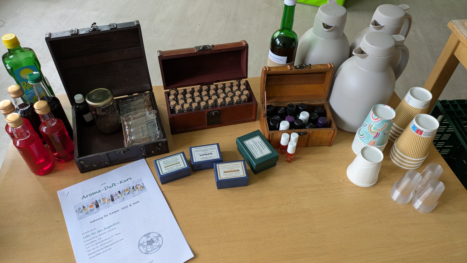 Das Leben ist von Düften/Aromen geprägt. Täglich nehmen wir sooo viele verschiedene Düfte in uns auf. Sei es unterwegs in der Stadt, in der Natur, beim Essen vorbereiten und erst recht beim Speisen selbst. Unsere Geschmacksnerven werden manchmal mehr als überfordert. Vergangenen Sonntag haben wir uns den natürliche n Düften und Aromen gewidmet. Den ätherischen Ölen, Hydrolaten , den Auszügen der Pflanzeninhaltsstoffe in Alkohol, fetten Ölen oder nur in klarem Wasser. Nahrung für die Sinne und dennoch für Körper, Geist und Seele.