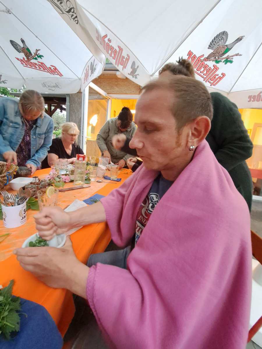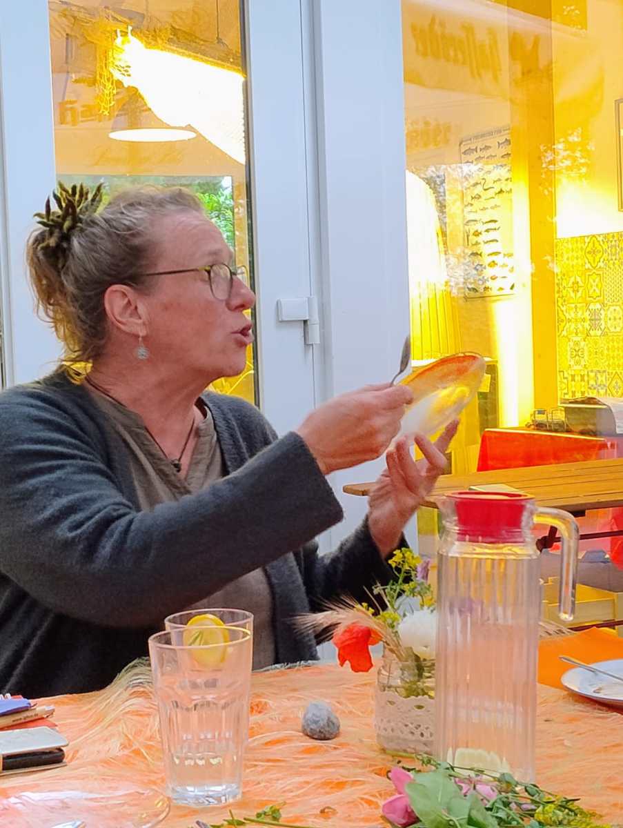 Was soll ich sagen, es war einfach ein wunderschöner Abend, ein unvergessliches Zusammensein!!! Wir trafen uns gegen 17 Uhr bei der Fischerei Michael Betge und Sabine Steffens in Plaue/Margarethenhof. Zu Beginn wanderten wir eine gute Stunde durch die Natur und sammelten verschiedene Kräuter für unsere spätere Zubereitung. Da sich der Wind ganz schon verstärkte und auf der Havel sich einiges zusammenbraute, drehten wir um und gingen langsam zurück. Dann wurde uns ein Abendmahl serviert... wir waren sprachlos, ließen es uns schmecken und wurden auch noch mit Nachtisch verwöhnt. Im Anschluß bereiteten wir aus unseren gesammelten Kräutern ein Kräutersalz zu und fuhren glücklich, gut gesättigt und voller Freude nach Hause. Vielen Dank für die ´gemeinsame Zeit!!!