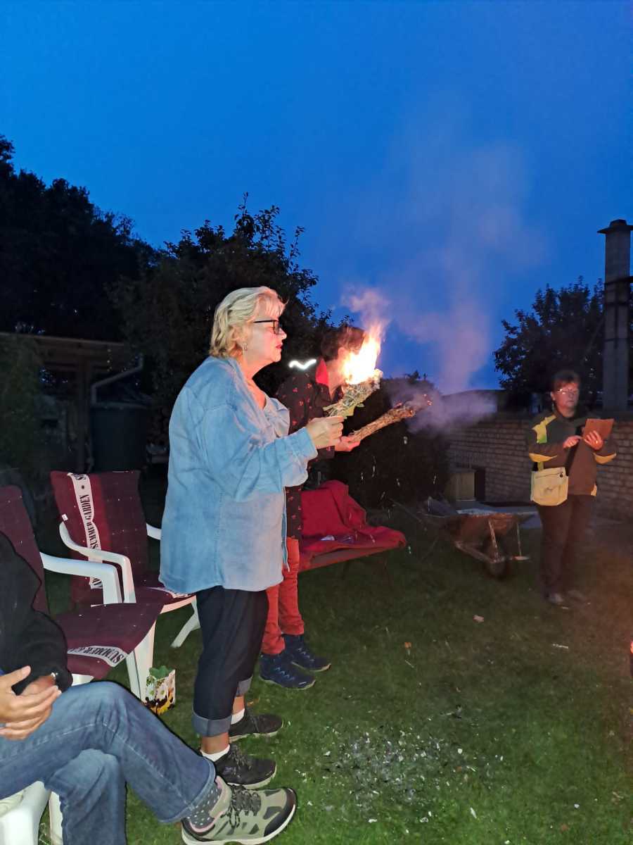 Ein wunder-volles und einzigartiges Kräuterjahr ist nun zu Ende gegangen. Es gab viele neue Gesichter, vertraute Kräuterneugierige und gleichgesinnte liebe Menschen die mich in diesem Jahr auf den Wanderungen begleitet haben. Als Dank an die Natur, die Kräutergeister und all jene, die uns wohl gesonnen waren, haben wir dieses Kräuterjahr gebührend verabschiedet. Wir haben geräuchert, uns verabschiedet mit Wünschen und wer mochte hat "losgelassen". Es wurde gut gegessen und unsere Hexenbesen haben wir verräuchert und dem Feuer übergeben. Dankeschön an Christina und ihren Bernd für die Vorbereitungen und für "unseren" schönen Räucher/Ritualplatz zu jedem Saisonende. Von Herzen danke ich euch allen für unsere gemeinsame und wunderschöne Zeit, euer Vertrauen, euer Weitersagen und fürs immer wieder dabei- und neugierig sein. ...eure Kräuterfrau Doreen