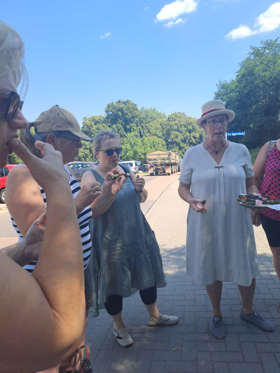 Kräuterwanderung die 5. - Sonntag, 21. Juli um 13 Uhr am Wusterwitzer See !!! Die heißen Temperaturen und das momentan 'ver-rückte' Wetter hat uns an diesen sehr schattenreichen und luftigen Ort geführt. Und es war eine gute Entscheidung. Wir konnten uns entspannt auf die wenigen Kräuter einlassen und konzentrieren und zu guter Letzt gabs ein Eis und vorbereitende Gespräche zum Fischerjakobiumzug. Danke für unsere gemeinsame Zeit!!! ...ich habe heute mal drauf geachtet, dass die Bilder in der richtigen Reihenfolge erscheinen, aber ein wenig ist es dennoch wieder durcheinander, denn die fertigen Beinwellrouladen vor der Zubereitung... na ja, ihr bekommt das hin, ich weiß es ... Danke!
