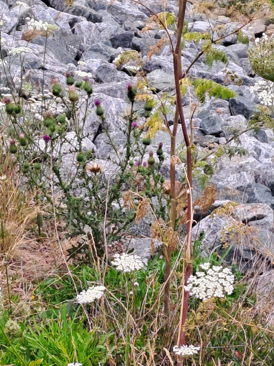 Und wieder waren wir auf den Spuren von Mutter Erde in der Natur unterwegs. Dieses Mal eroberten wir die Wege entlang des Wusterwitzer Kanals in Richtung Schleuse. Wir wurden doch sehr reich beschenkt und fanden von wilder Möhre, über Rainfarn, die echte Kamille und den Blutweiderich, langsam zu blühen beginnende Goldrute, der Hopfen rankelte sich schon entlang und Brombeeren zum Naschen. Und wir entdeckten zwischen den großen Steinen am Ufer den giftigen gefleckten Schierling. Ein Doldenblütler der große Ähnlichkeit mit Anis oder Kerbel oder Fenchel oder.... es gibt sooo viele Doldenblütler auf unserer Erde, daher ist es sehr wichtig, genau hinzuschauen, zu bestimmen und wenn man sich nicht sicher ist, die Pflanze einfach "nur" zu bewundern. Es waren schöne Stunde und wir hatten zusammen wieder viel Freude und lernten voneinander.