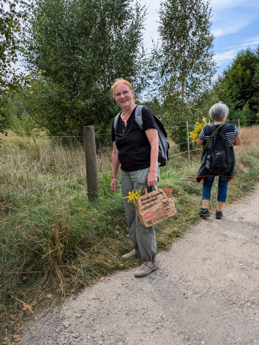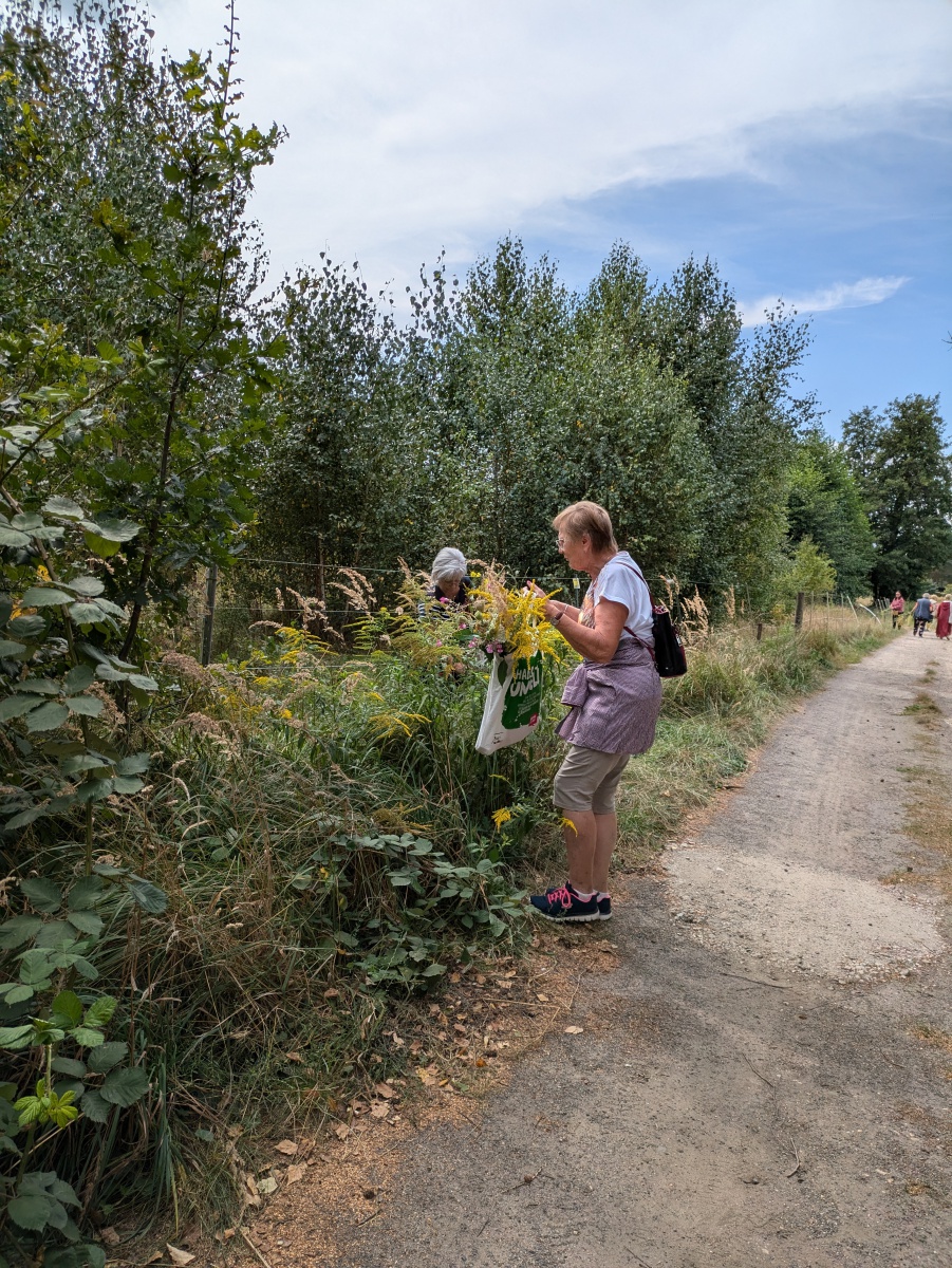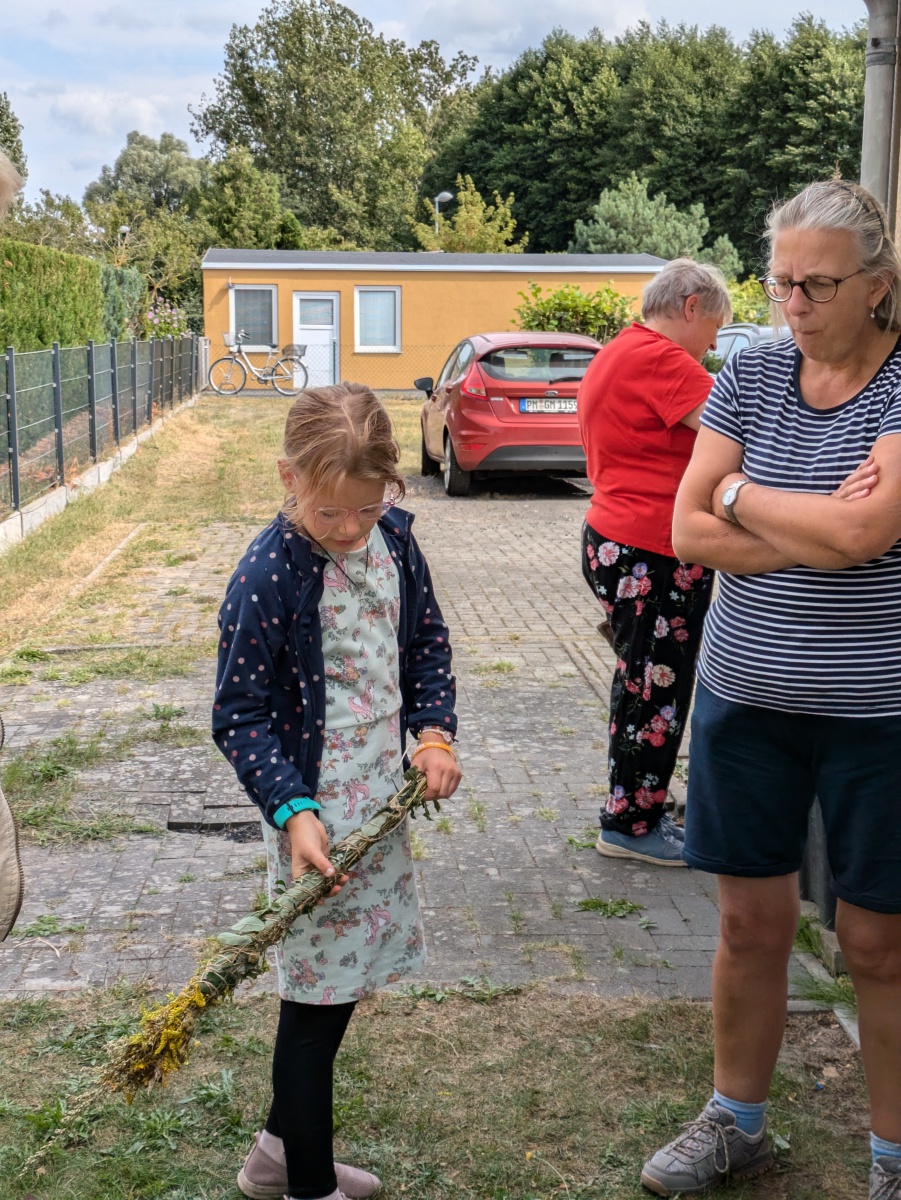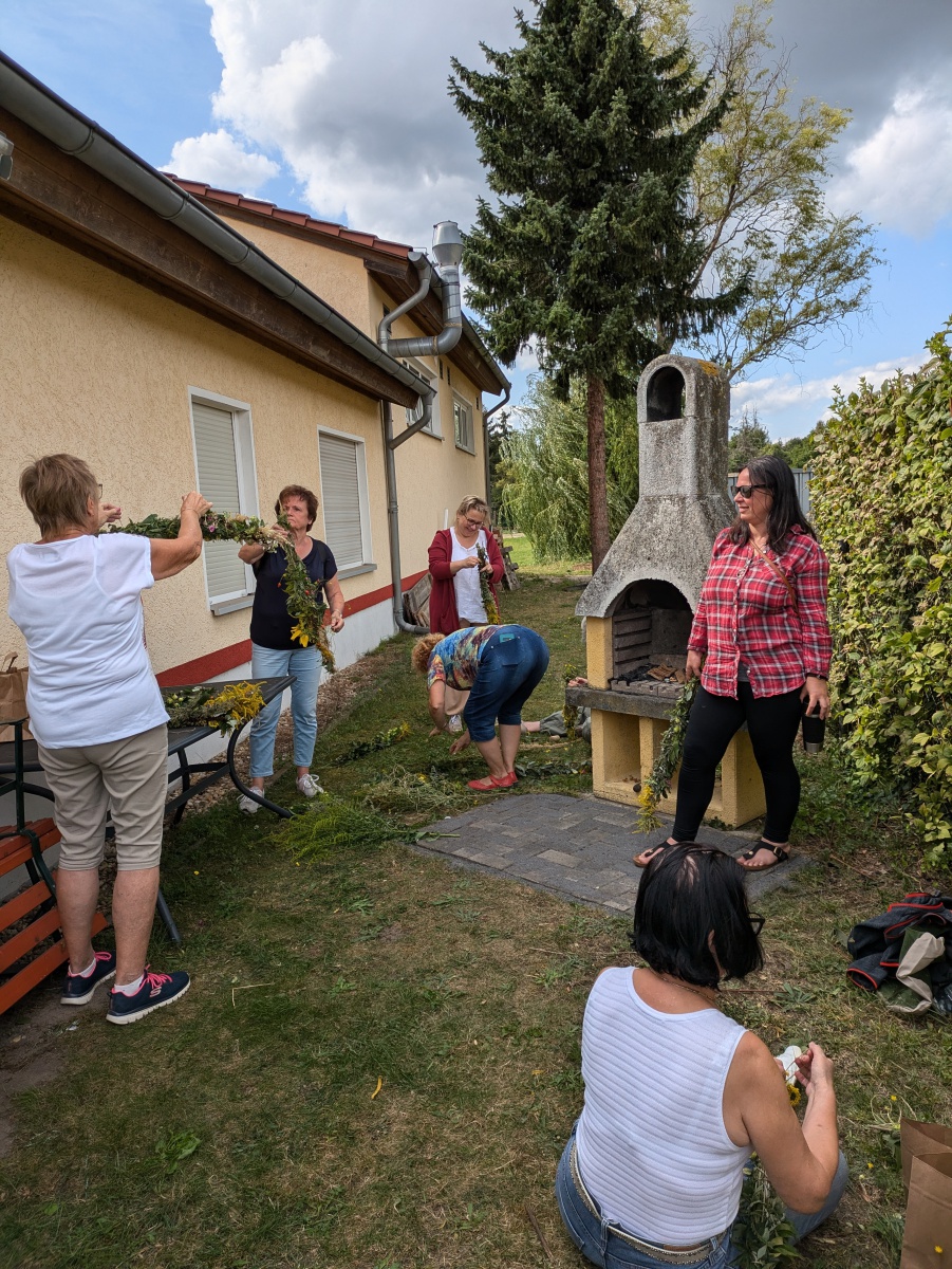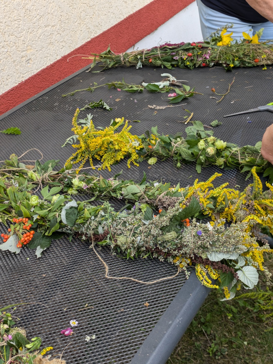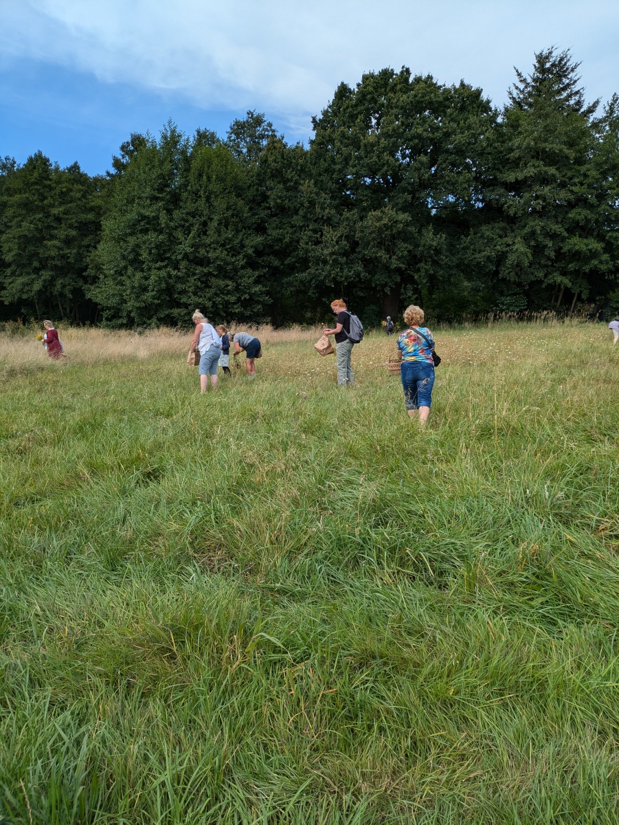 Die Götter hatten ein Einsehen und wir gingen bei angenehmen Sommertemperaturen, einer leichten Brise und auch ab und eine Wolken in die Kräuter. heute ging es einfach ums Sammeln. Jeder nahm die Wildkräuter seines Herzens für das Binden des "Hexenbesen" mit. Später saßen wir wieder zusammen, jeder band sich seine Kräuter mit Naturgarn in Vorbereitung auf unsere Abschlußrunde Ende September. Wunderschön und voller Freude, vielen ihr Lieben!!!