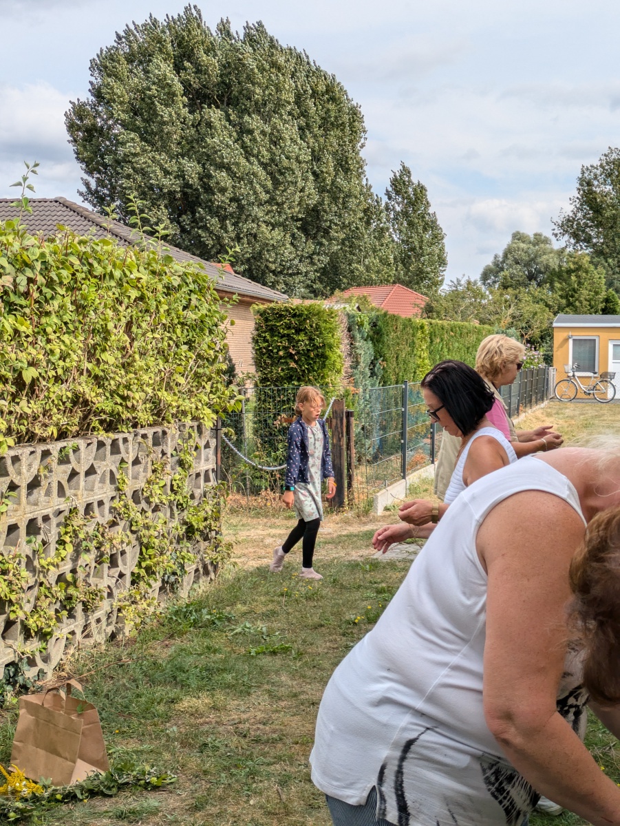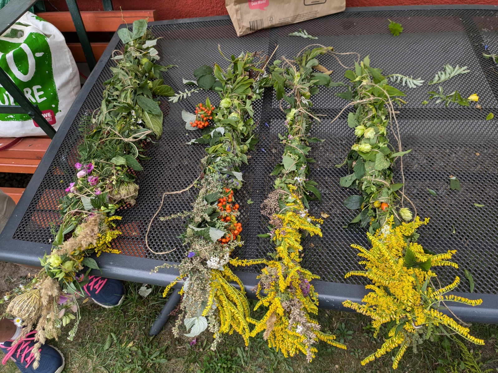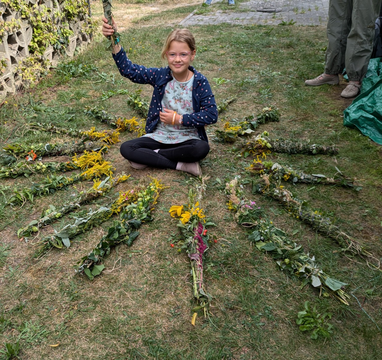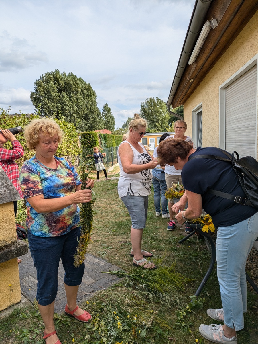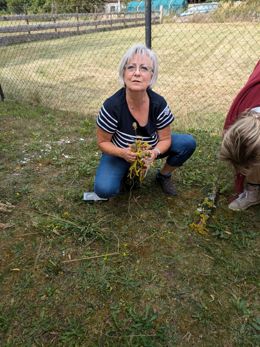Die Götter hatten ein Einsehen und wir gingen bei angenehmen Sommertemperaturen, einer leichten Brise und auch ab und eine Wolken in die Kräuter. heute ging es einfach ums Sammeln. Jeder nahm die Wildkräuter seines Herzens für das Binden des "Hexenbesen" mit. Später saßen wir wieder zusammen, jeder band sich seine Kräuter mit Naturgarn in Vorbereitung auf unsere Abschlußrunde Ende September. Wunderschön und voller Freude, vielen ihr Lieben!!!
