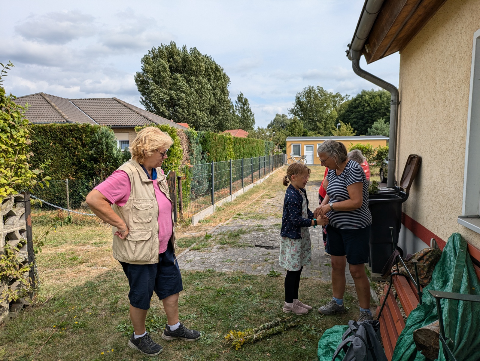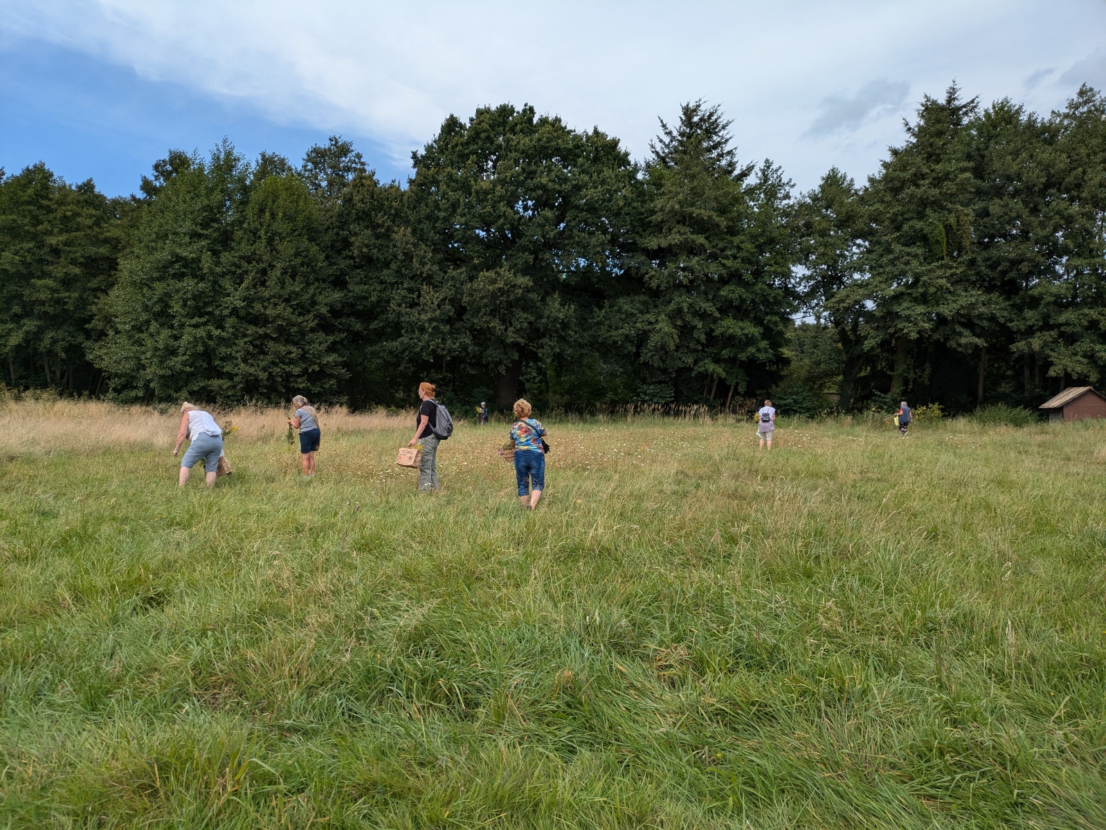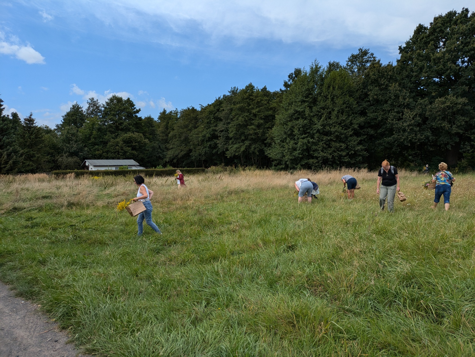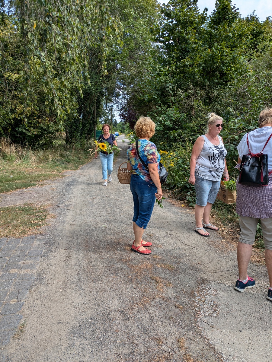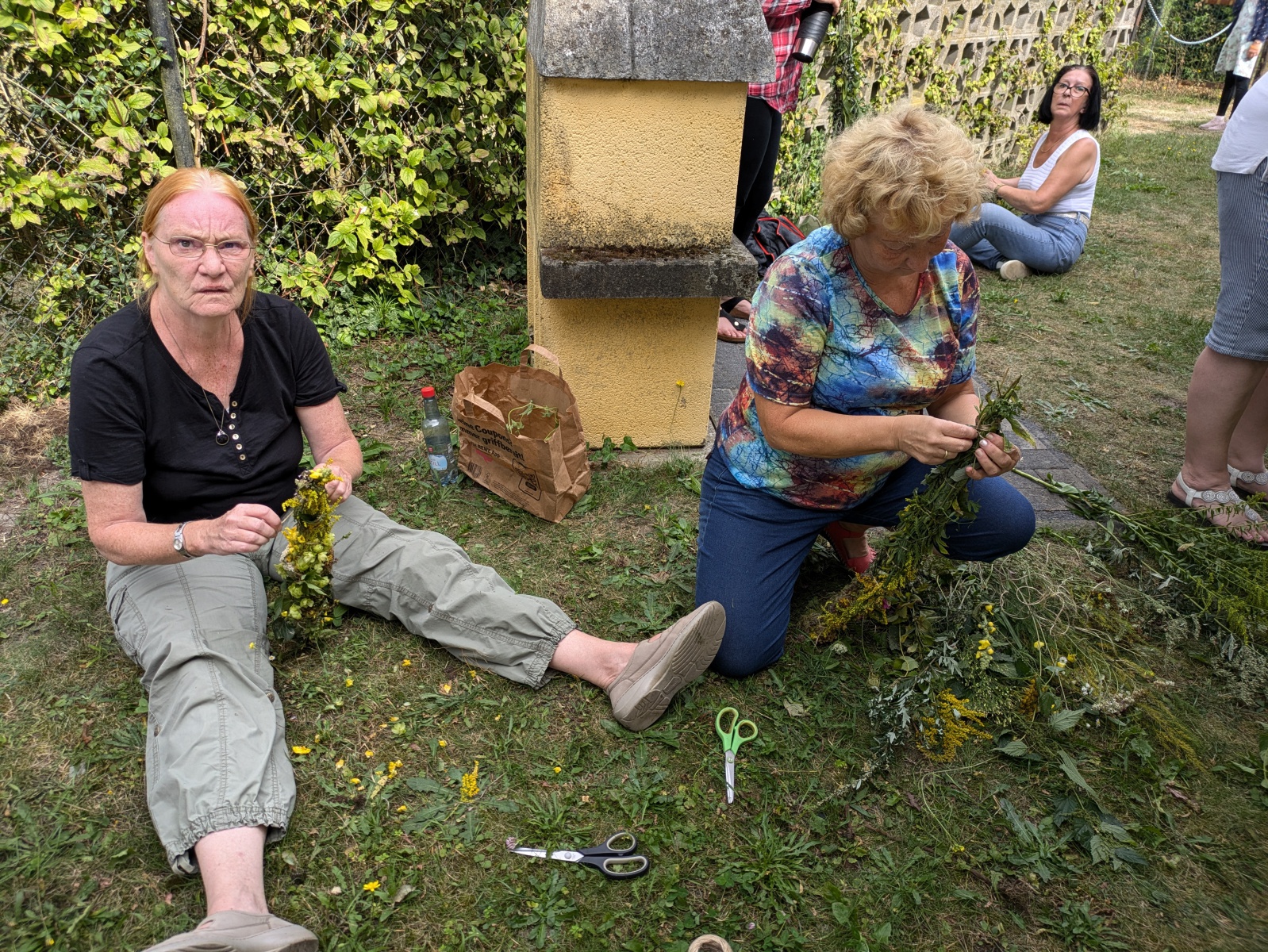 Die Götter hatten ein Einsehen und wir gingen bei angenehmen Sommertemperaturen, einer leichten Brise und auch ab und eine Wolken in die Kräuter. heute ging es einfach ums Sammeln. Jeder nahm die Wildkräuter seines Herzens für das Binden des "Hexenbesen" mit. Später saßen wir wieder zusammen, jeder band sich seine Kräuter mit Naturgarn in Vorbereitung auf unsere Abschlußrunde Ende September. Wunderschön und voller Freude, vielen ihr Lieben!!!