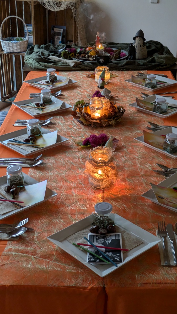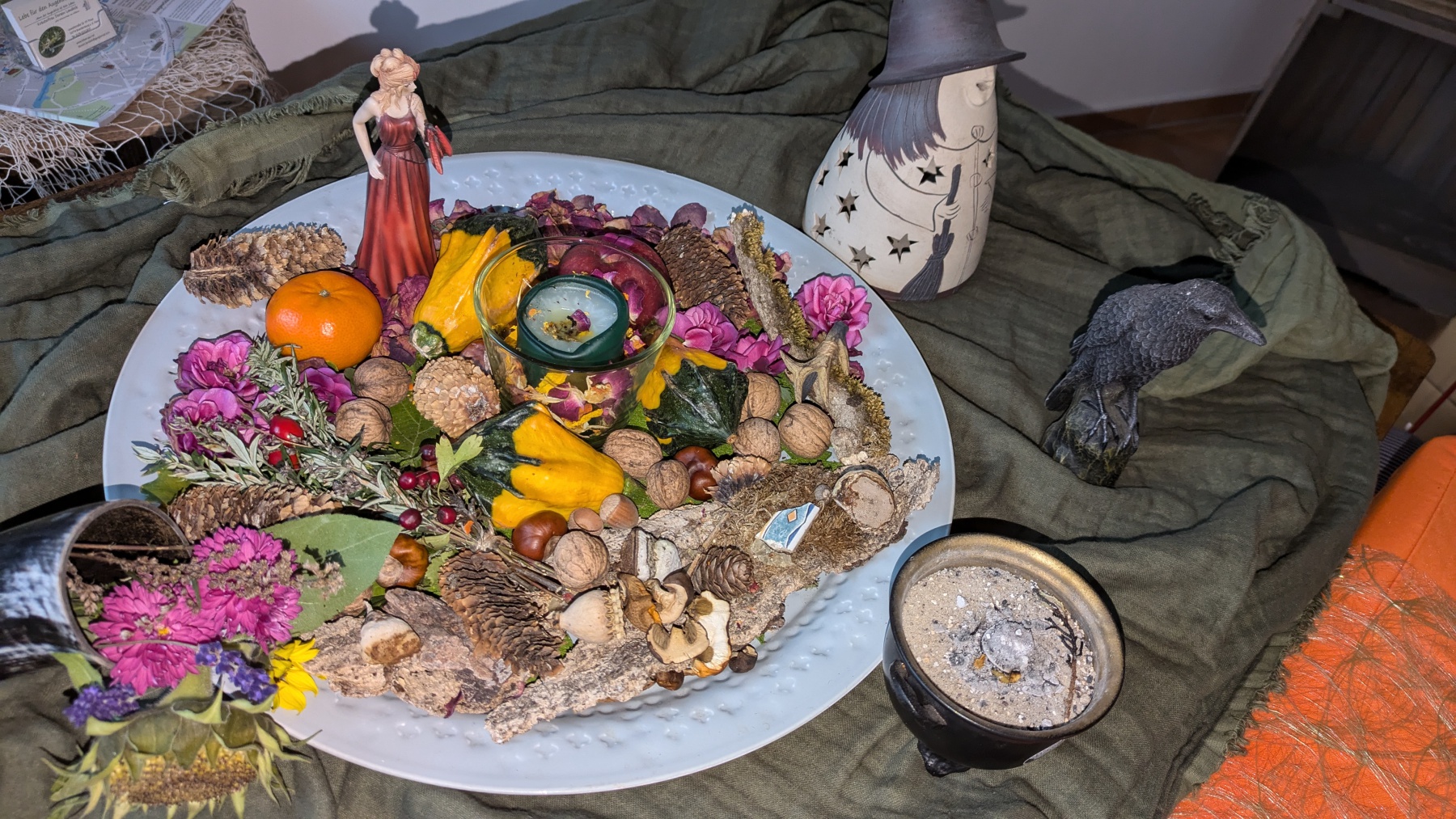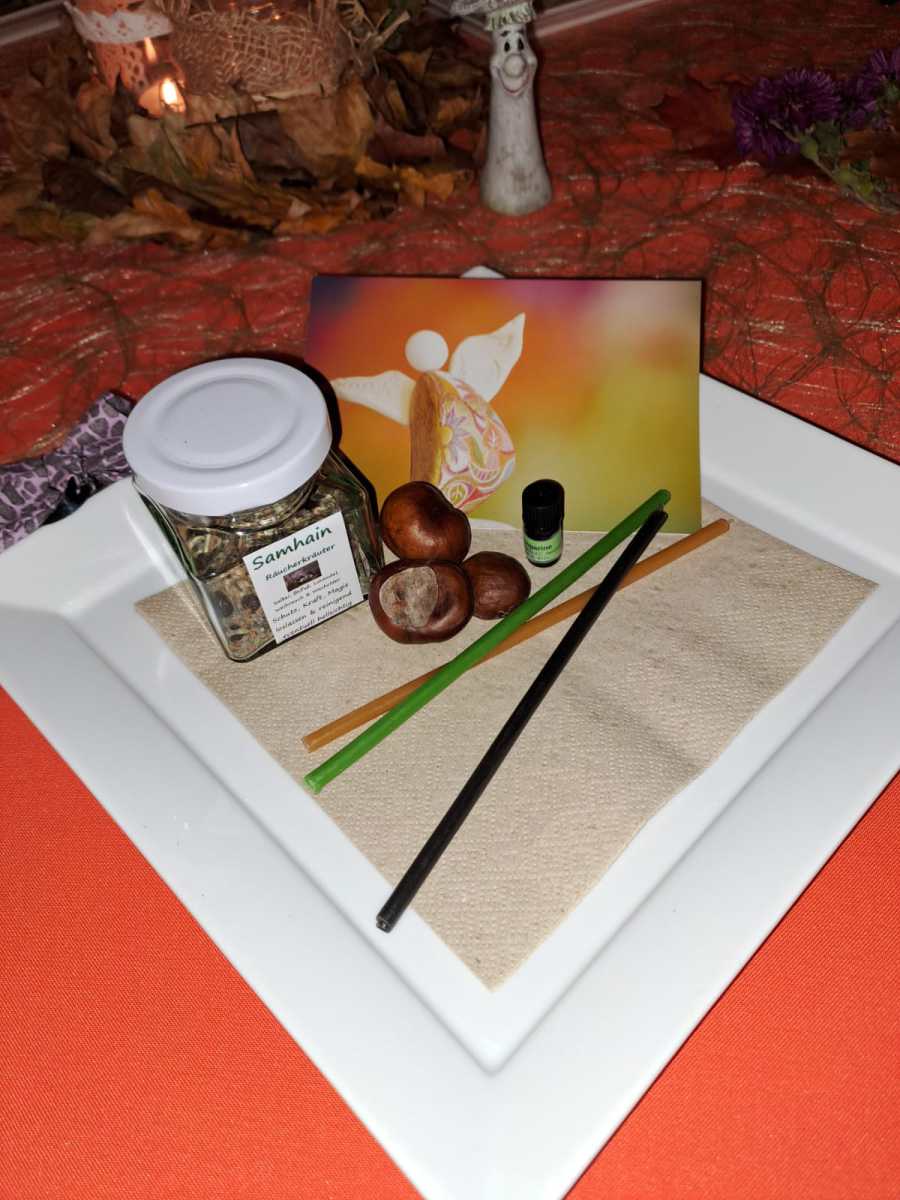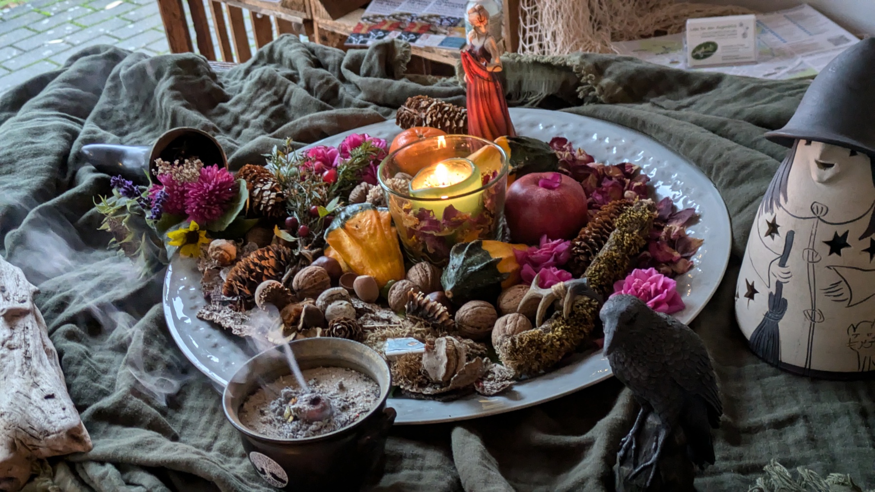 Samhain - wir haben in diesem Jahr Halloween einmal anders 'gefeiert' Ein etwas anderer Jahresabschluß, unser Ahnen haben am 31. Oktober ihr Jahr beendet, denn die Arbeiten im Außen waren erledigt. Die helle warme Jahreszeit wurde durch die die kalte dunkle Zeit abgelöst. Eine Art "Ernte-Dank-Fest". Auch wurde so unserer Ahnen, der Toten Ehre erwiesen. In Gedenken an ihre Zeit unter uns wurden Speisen und Getränke geteilt, geräuchert und einige Tage zuvor Kerzen aufgestellt, damit sie den Weg fanden. Gerne wurden Fotos und kleine Andenken dazu gestellt. Der Schleier zwischen der Toten- und der irdischen Welt war sehr dünn. Unsere Ahnen konnten nun durch die Tore der Anderswelt reisen. Hierzu war es sehr wichtig zu räuchern. Wacholder, Weihrauch, Salbei , Lavendel und vorallem Beifuß sind hier mit die besten Kräuter zum Danksagen und zum "Reisen". Speis und Trank wurden uns wieder durch die Hofladen-Fischerei Margarethenhof serviert. Michael Betge und seine Sabine verwöhnten erneut unseren Gaumen mit köstlichen Fischvariationen - vielen Dank!!! Ein unvergesslicher Abend, ein Jahresabschluß einmal anders...